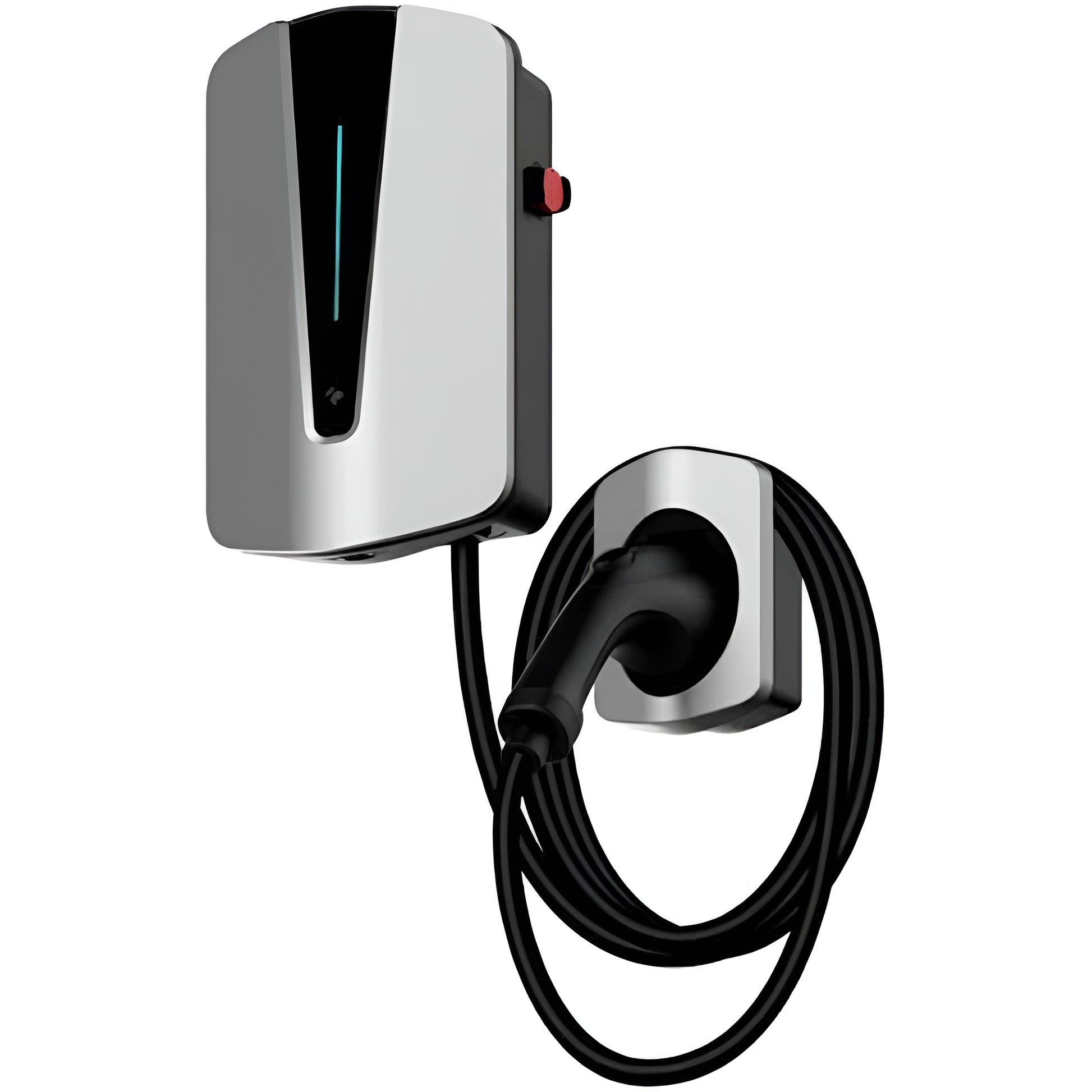The Voltique HaloWall EV Charger is designed for high-end residential and commercial EV installations. With its sleek vertical LED indicator, brushed aluminum housing, and precision-mounted cable holder, this wall-mounted unit delivers fast, safe, and intelligent charging in a compact footprint. The HaloWall system combines minimalist aesthetics with advanced power management, making it the perfect choice for modern garages and premium EV setups.